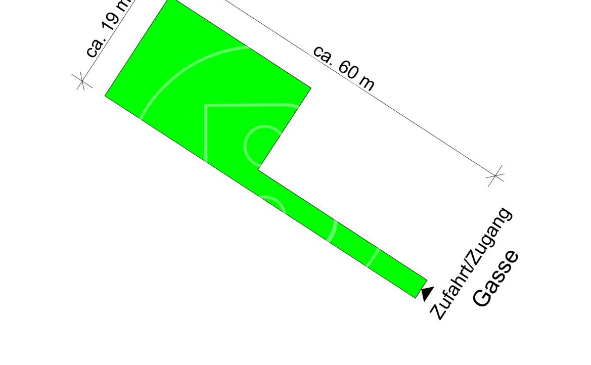 Bei der Liegenschaft handelt es sich um ein Fahnengrundstück. Die "Fahne" ist ca. 4m breit und 33 m lang.