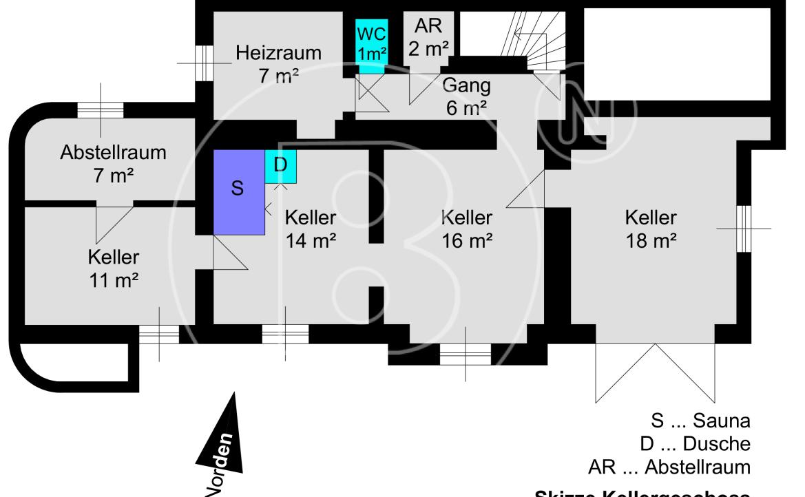 Primär südseitig orientiert, verfügt das Haus im Erd- und Dachgeschoss zusammen über ca. 161 m² Wohnnutzfläche. Bis auf einen kleinen Teil ist das Haus fast vollständig unterkellert. Im Keller-/Souterrainbereich gibt es weitere ca. 82 m² Nutzfläche.
