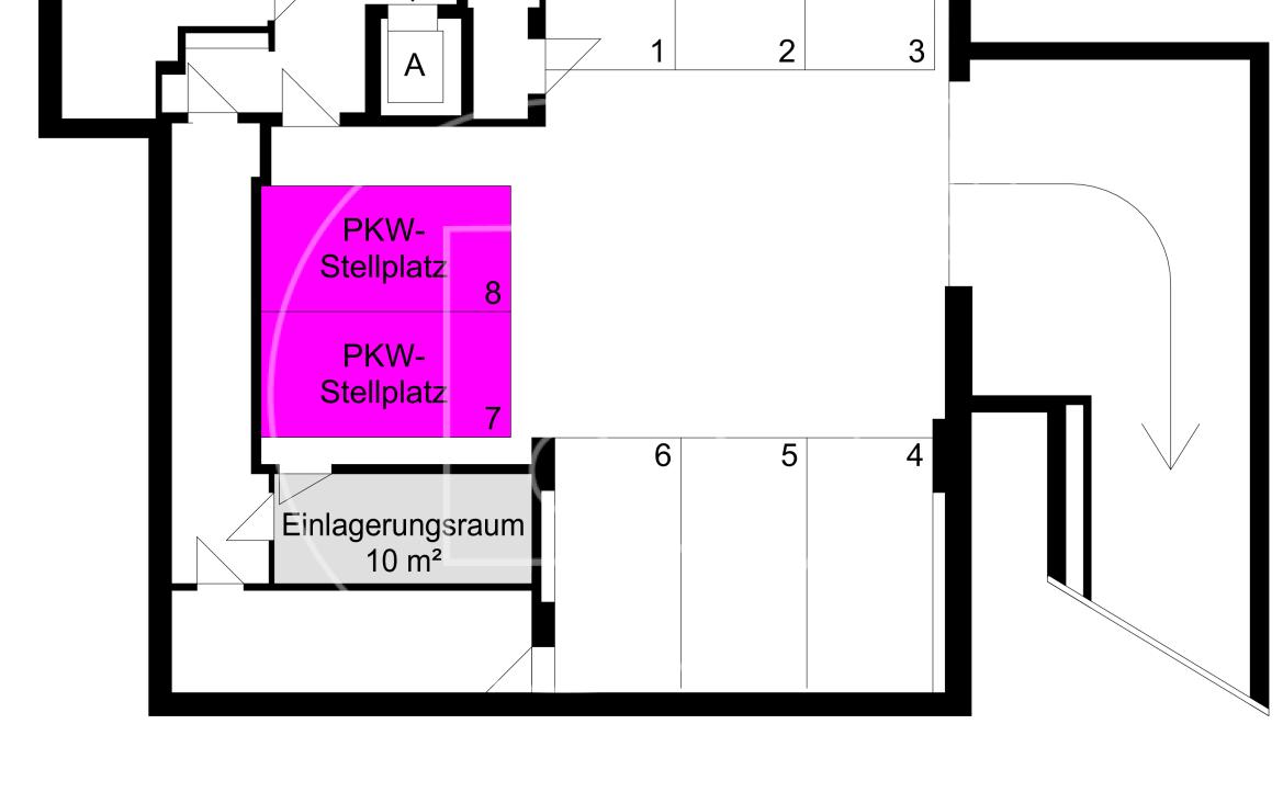 Der Wohnung zugeordnet ist ein ca. 10 m² großer Einlagerungsraum direkt neben der Tiefgarage.