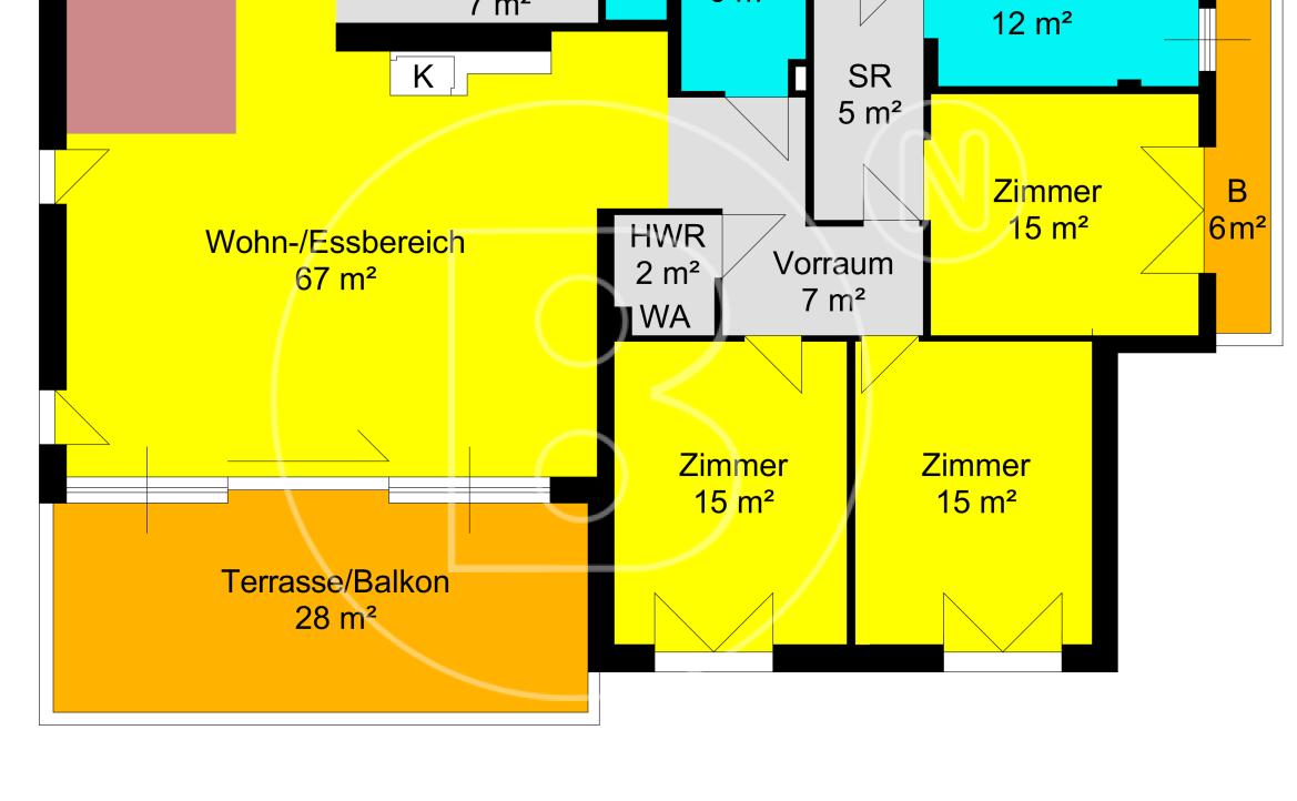Es stehen auf einer Ebene ca. 155 m² Wohnnutzfläche zur Verfügung, die sich im Wesentlichen auf vier Zimmer, eine Küche, zwei Bäder, drei WCs, ein Garderobenbereich und einen Hauswirtschaftsraum aufteilen.