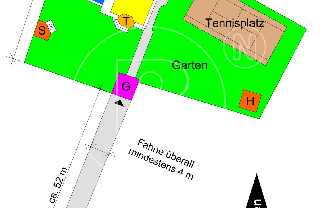 - Ca. 2.467 m² (davon ca. 250 m² Fahnenzufahrt),