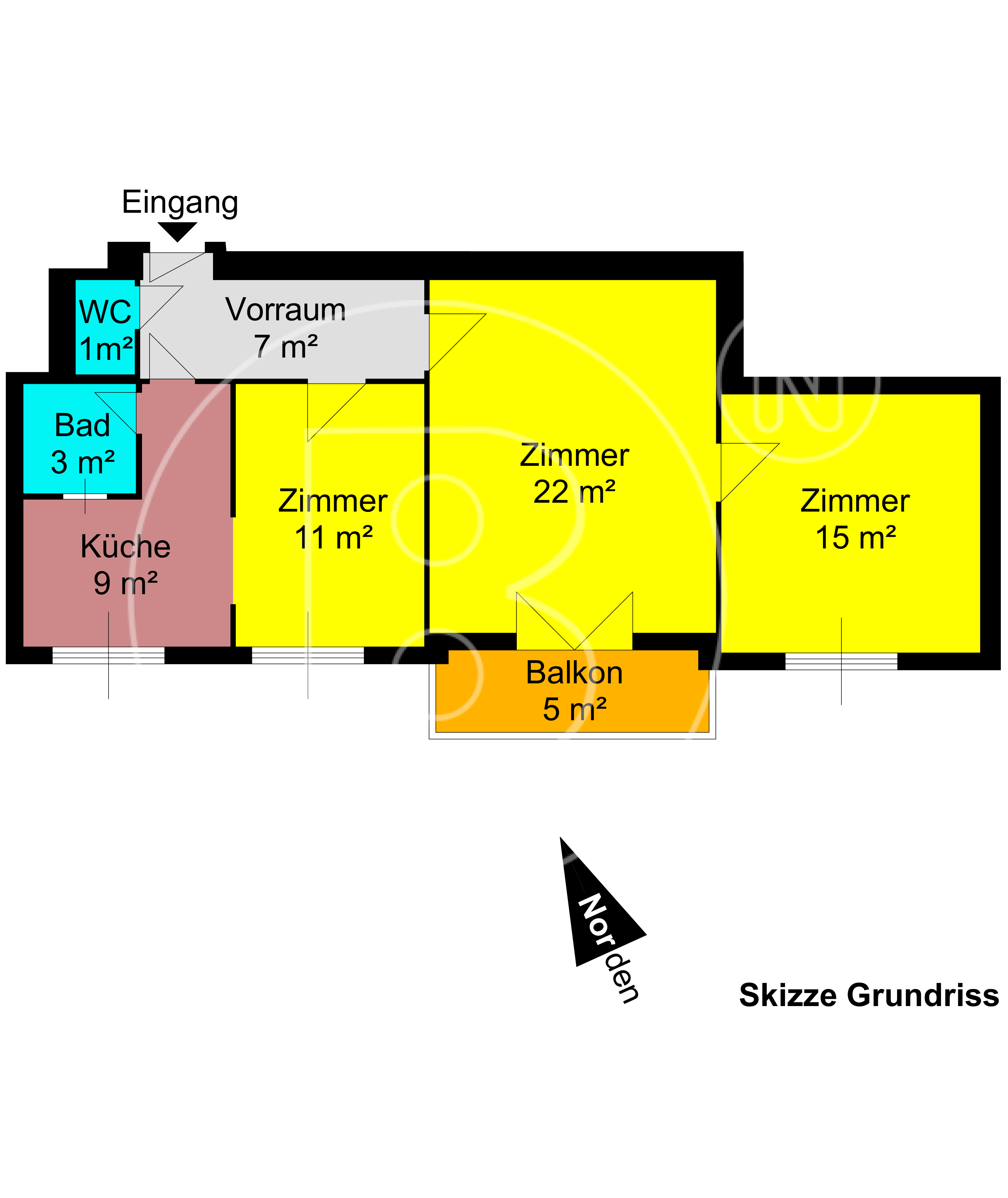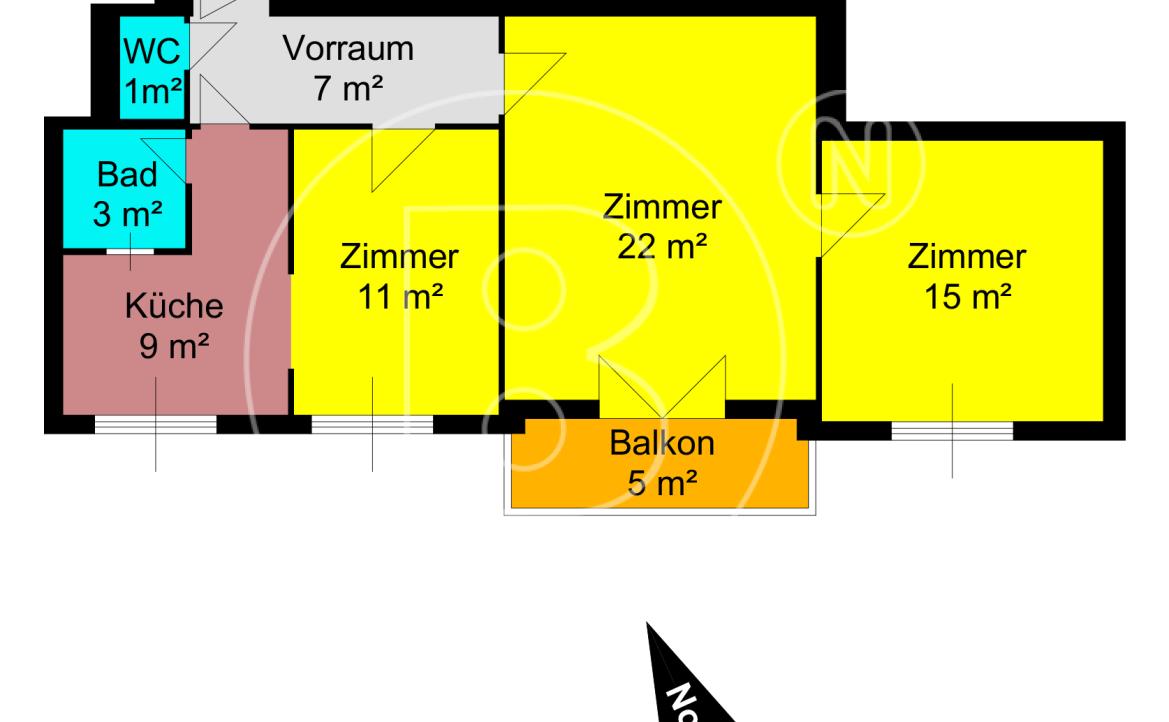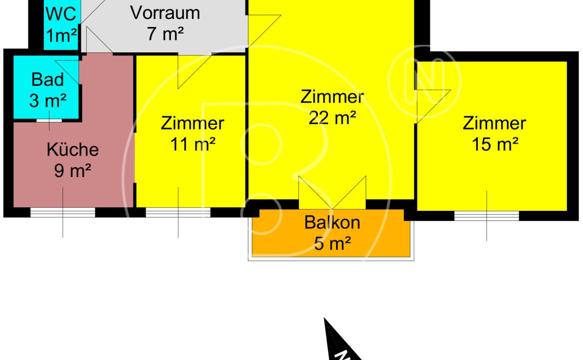 Ohne den Lichteinfall blockierendes direktes Gegenüber und primär südseitig gelegen, ist die Wohnung sehr hell und hat großes Charme-Potential. Highlight ist ein ca. 5 m² Balkon.