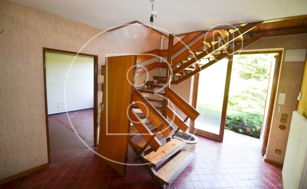 Das im oberen, hinteren Teil des Grundstückes positionierte Einfamilienhaus, welches ca. im Jahr 1970 errichtet wurde, ist nicht bewohnt. Es verfügt über ein Erdgeschoss (im hinteren Teil in den Hang gebaut) und ein Obergeschoss mit insgesamt ca. 136 m² Nutzfläche zzgl. Terrassenflächen. Die genaue Raumaufteilung kann den beigelegten Grundrissplänen entnommen werden.